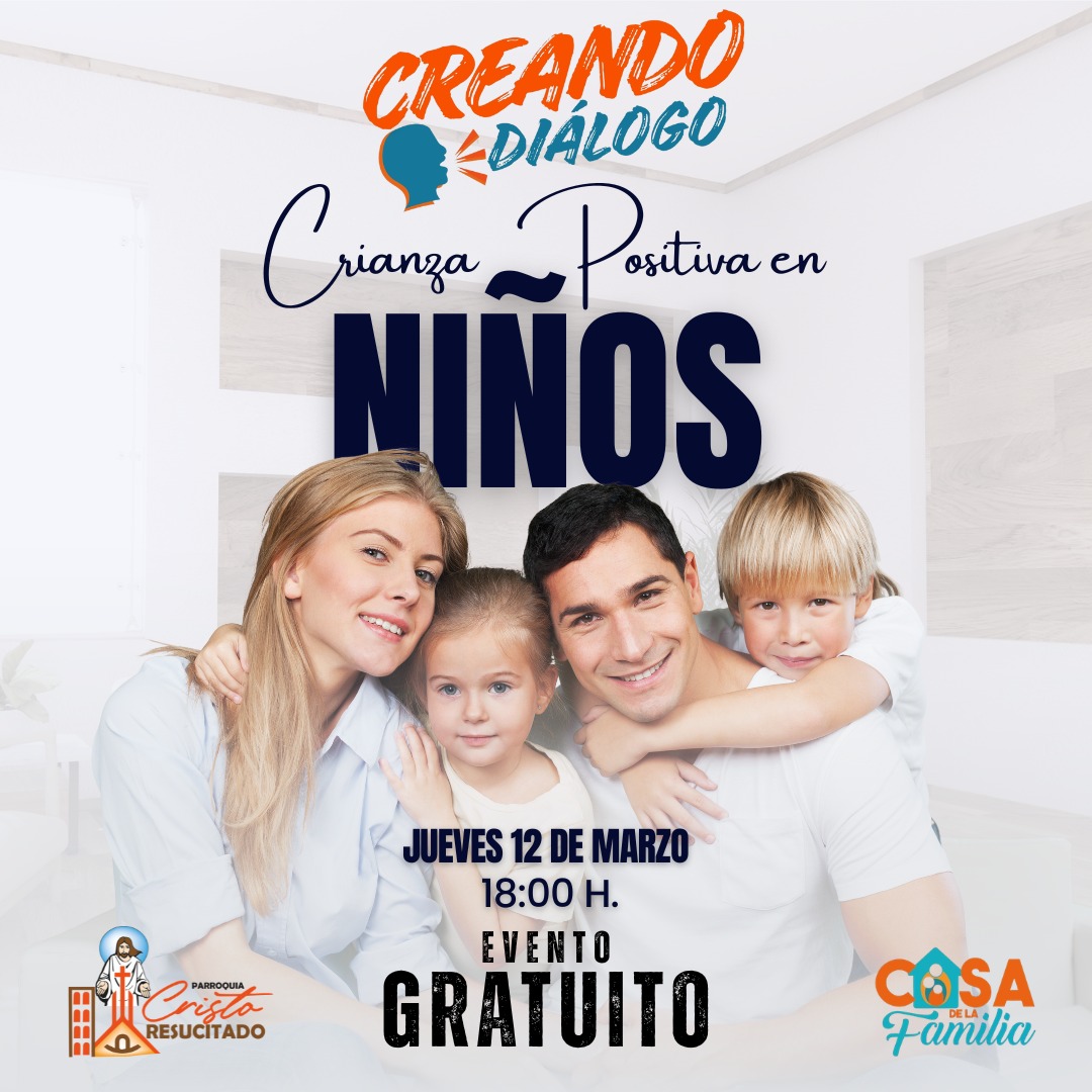 La Parroquia Cristo Resucitado, tiene el honor de invitarlos al evento Creando Dialogo, Crianza Positiva en Niños, el evento es promocionado por nuestra Casa de la Familia, programado para el jueves 12 de marzo a las 18:00. Para más informacion del evento, puedes comunicarte mediante le siguiente enlace https://api.whatsapp.com/message/Y36BYXWAJHOAA1?autoload=1&app_absent=0 o acercarte a la Casa de la Familia.