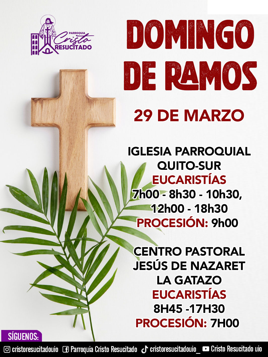 Ven este 29 de Marzo a celebrar el Domingo de Ramos, donde conmemoramos la entrada triunfal de Jesús a Jerusalén, este día que marca el inicio de la Semana Mayor tendremos Eucaristías y Procesiones.